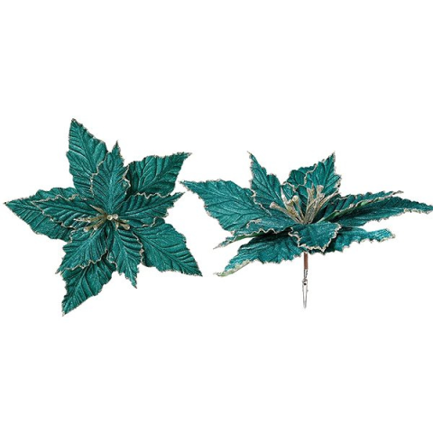 1 kép LAALU karácsonyi dekoráció - virág, zöld arany szegéllyel, 30 cm