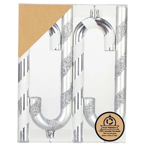 Karácsonyfadísz - étel / ital, egyfajta készlet, műanyag, matt és fényes felület, ezüst kivitel, magassága 14 cm, 4 db a csomagban A modern LAALU Karácsonyi dísz - cukorpálca, ezüst, 14 cm, 4 db termék lényeges paraméterei A dekoratív LAALU karácsonyfa díszek műanyag felhasználásával készültek Ezüst szín, matt és fényes felületke