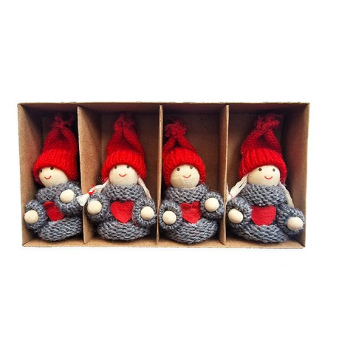 1 kép LAALU Karácsonyi dísz - figurák szívvel, piros, 8 cm, 4 db