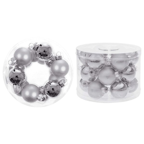 1 kép LAALU Karácsonyi dísz - gömb, ezüst, 4 cm átmérőjű, 18 db