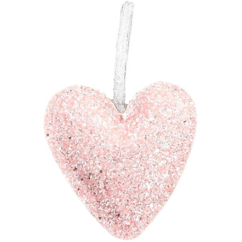 1 kép LAALU Karácsonyi dísz - műbőr szív, rózsaszín, csillámos, 12,5 cm