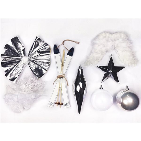 Karácsonyfadísz - atipikus forma, kombinált készlet, műanyag, matt, fényes és csillogó felület, fehér és ezüst kivitel, 118 db a csomagban A modern LAALU karácsonyi díszek - Havas ajándék készlet, 300 - 450 cm fákhoz termék legfontosabb jellemzői A modern LAALU karácsonyfa díszek gyártásához tartós műanyagot használtak Fehér és ezüst kiv