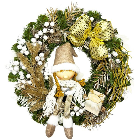Koszorú - karácsonyi, felakasztható, díszített, anyaga PVC, 45 cm külső átmérő, zöld és arany kivitel