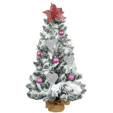Műfenyő - mű, jedle 2D tűlevéllel, fehér kivitel, magassága 60 cm, szélessége 40 cm, beltéri, a felszereltség része állvány, díszek, megvilágítás és havas borítás, fehér, ezüst és rózsaszín díszek A dizájnos LAALU LED fényekkel díszített karácsonyfa - Gyöngyszív, 32 dísz, 60 cm termék legfontosabb paraméterei A szemet vonzó fehér színű LAALU műfenyő kifejezetten beltéri használatra lett tervezv