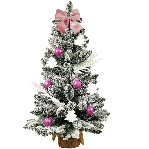 1 kép LAALU LED fényekkel díszített karácsonyfa - Rózsaszín ajándék, 26 dísz, 60 cm