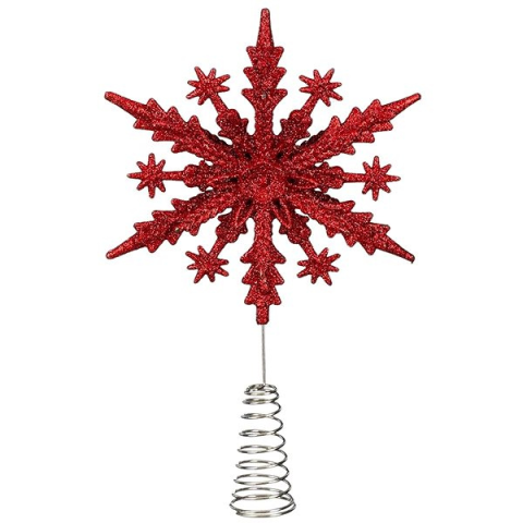 1 kép LAALU Špička na vánoční stromeček vločka červená plast 23 cm