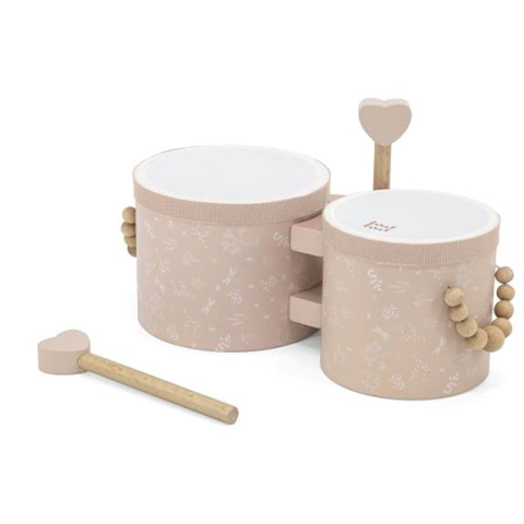 Gyerek ütős hangszer - anyaga fa, dobverők a csomag része, ajánlott 1 éves kortól The Label Label children's bongo drums in pink are ideal for budding musicians. Children can enjoy two connected drums that are decorated with a subtle motif of plants and dragonflies. The original he