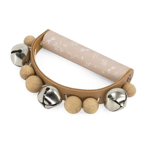 Gyerek ütős hangszer - anyaga fa, ajánlott 6 hónapos kortól Label rattle with bells, Pink is the ideal toy for little ones from 6 months. The Label toy will arouse children's interest thanks to its pleasant-sounding bells. The wooden percussion instruments fit