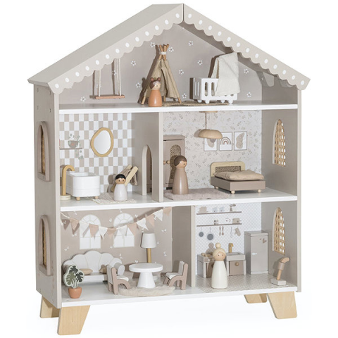 Babaház - mérete 66,5 × 54,5 × 21,3 cm (Ma×Sz×Mé), 3 szintes, 5 helyiség, fürdő, konyha és gyerekszoba, ágy, baba és fürdőszoba felszerelés a csomagban, fehér, barna és bézs kivitel, ajánlott 3 éves kortól A babaház hosszú évek óta népszerű játék. A gyermek megteremti saját világát, amelyben játszani fog a babákkal, és úgy gondoskodik róluk, ahogyan ő szeretne. A játék segítségével fejlesztik képzelőere