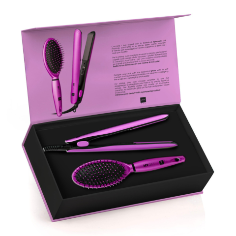 A My Gift az ideális készlet minden hajtípushoz: a dobozban egy lila színű professzionális turmalin hajvasaló és egy lila hajkefe található. Fokozza szépségét egy kényeztető rutinnal! Hajvasaló: - turmalin bevonatú simító lapok. - 25 x 90 mm-es simí