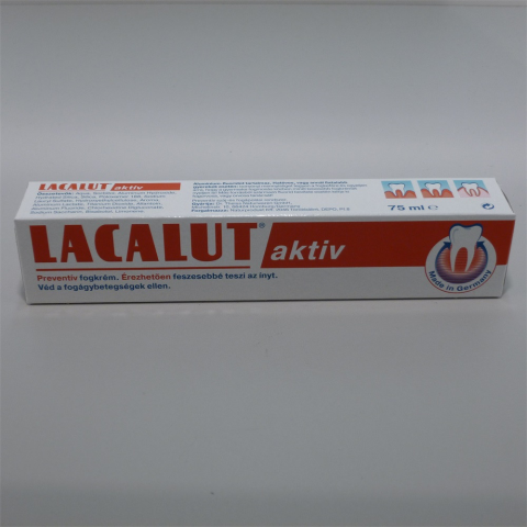 Lacalut aktiv fogkrém 75 ml Fogkrém, mely érezhetően feszesebbé és erősebbé teszi az ínyt. Véd a fogínyvérzés, a fogágybetegség és a fogszuvasodás ellen. Kifejezetten a fogágybetegség és a fogínyvérzés megelőzésére. Csökkenti az inger- és fájdal