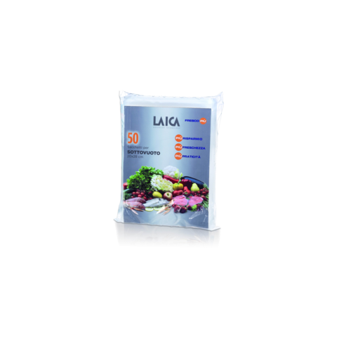 Magas minőségű, antibakteriális fólia tasak a vákuumfóliázó gépekhez. A Laica speciális többrétegű belső texturált vákuum csomagoló zacskóit kifejezetten élelmiszerek vákuum csomagolásához ajánljuk! Belső rétege antibakteriális, a texturált belső felületnek köszönhetően meggátolják az élelmiszerek elmozdulását a vákuum képződése során. A külső rétege ellenáll a víznek, gőznek bizonyos értékig a magas hőnek. Független szakértők vizsgálatai i