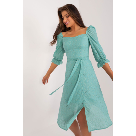 Hétköznapi Ruha Lakerta MM-195784. Színe: Zöld Ez a nyári ruha frissességet és könnyedséget sugároz, tökéletes mindennapi viselet a meleg napokon. Lengő szabása növeli a báját, és kényelmes viseletet biztosít, lehetővé téve a bőr számára a légzést. A szellős pamutból készült ruha a legmelegebb napokon is garantálja a kényelmet. Midi hossza elegáns megjelenést kölcsönöz, miközben a mozgás szabadsága megmarad. A röv