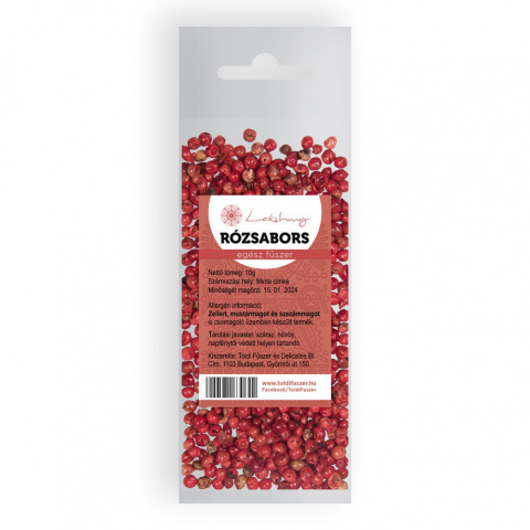 Lakshmy rózsabors egész 10 g Bár külső megjelenésében hasonló, de semmilyen köze sincs a borshoz és nem is helyettesíthető vele. A Dél-Amerikában őshonos borsfa termése adja a fűszert, íze enyhén édeskén, kesernyés. Halételekhez, sültekhez, sós és é