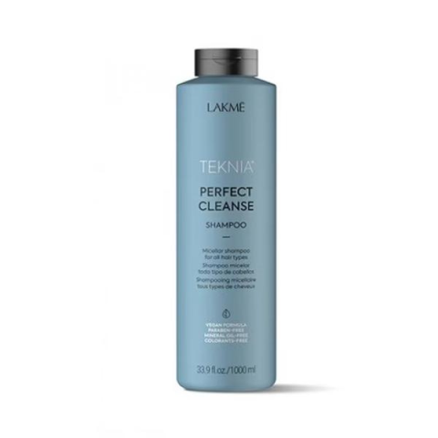 Lakmé Teknia Perfect Cleanse Shampoo – Tisztító sampon minden hajtípusra, 1000 ml 133001A Lakmé Teknia Perfect Cleanse egy professzionális, micellás alapú tisztító sampon, amely mélyen megtisztítja a hajat és a fejbőrt anélkül, hogy kiszárítaná vagy irritálná azt. Ideális választás mindennapos vagy időszakos mélytisztításra, különösen városi környezetben élőknek vagy sok styling terméket használóknak.Főbb jellemzők:Micellás méregtelenítő formula –