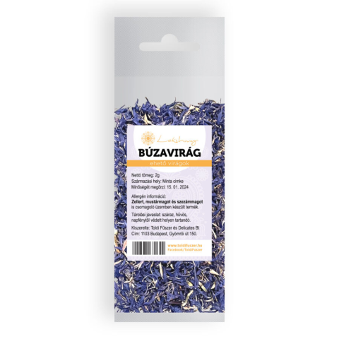 Lakshmy búzavirág szirom 2 g A búzavirág (Cyanus segetum) Dél-Európából származik. A növény kék virágait gyűjtik, amely annál értékesebb, minél jobban sikerül megőrizni eredeti színét. A gömbös fészkes virágzatot letörik, és kosárba szedve szállítják,