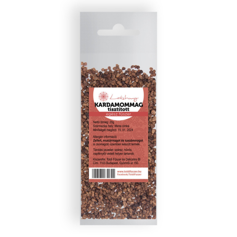 Lakshmy kardamommag tisztított 20 g A zöld kardamom hüvelyét és a bennük lévő magokat hasznosítjuk. Az egész zöld kardamom a tokjában rejti azokat a fekete apró kis magokat, amelyek a kardamom igazi, erős zamatát adják. A kardamomos tekercs térhódít