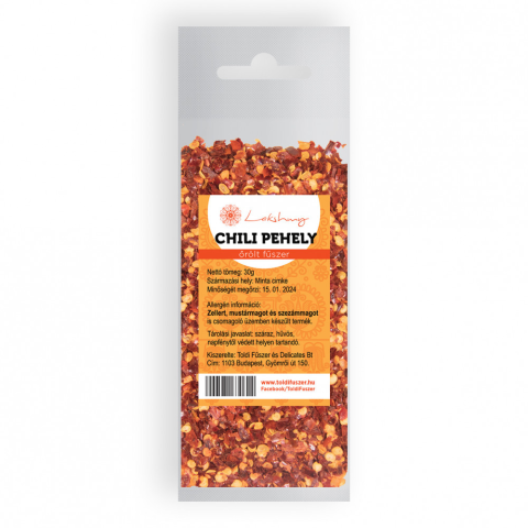 Lakshmy chili pehely 30 g Mexikóban őshonos fűszernövény, mára az egész világon elterjedt. Ma a Távol-Keleti és az Afrikai konyák nélkülözhetetlen fűszerévé vált. A fekete csucsor családjába tartozó, bokorszerű növény termése adja a fűszert. Közel száz