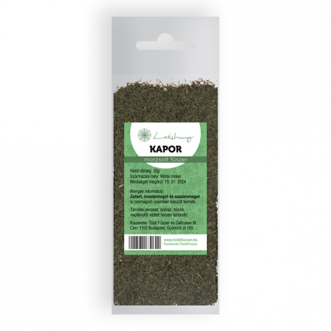 Lakshmy kapor morzsolt 14 g Termésén kívül, fiatal virágát és levelét is felhasználjuk. A kapor illata édeskés, egészen egyedi aromájú. Íze, éppen csak érezhetően kesernyés és illatához hasonlóan egyedülálló. Magyarország egyik legkedveltebb fűszere.
