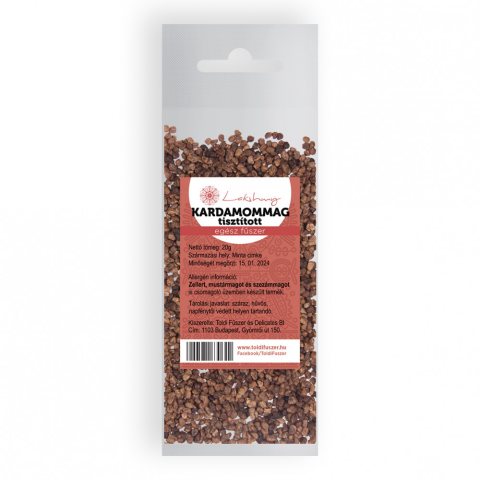 Lakshmy kardamommag tisztított 20 g A zöld kardamom hüvelyét és a bennük lévő magokat hasznosítjuk. Az egész zöld kardamom a tokjában rejti azokat a fekete apró kis magokat, amelyek a kardamom igazi, erős zamatát adják. A kardamomos tekercs térhódít