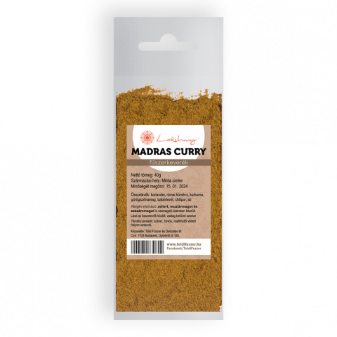 Lakshmy madras curry 40 g Állítólag a Dél-Indiai Madras városáról kapta ezt az elnevezést, az angol gyarmatosítóktól. Számtalan variációja van forgalomban. Sertés, csirke, marha, bárány, vagy zöldség curry készítésére egyaránt alkalmas. Összetevő