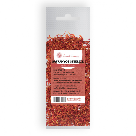 Lakshmy sáfrányos szeklice egész 10 g Afrikai származású, de hazánkban is termesztett fűszernövény nem azonos a valódi sáfránnyal. A virágszirmokban lévő bibék adják a kesernyés ízű fűszert. Vízben oldódó festékanyaga sárgára, míg a zsírban oldódó vör