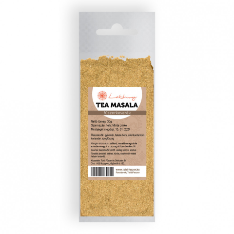 Lakshmy tea masala 20 g Ennek a fűszerkeveréknek is számtalan változata létezik. Összefőzve fekete teával, majd tejet és cukrot adva hozzá egy különleges, édes és aromás forró italt kapunk. Összetevői: gyömbér, feketebors, zöld kardamom, koriander, sz