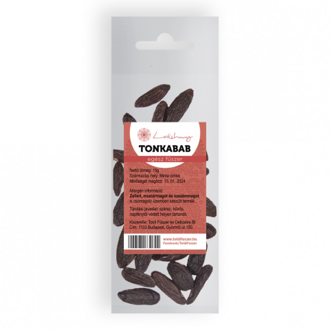 Lakshmy tonkabab 15 g A Tonkabab a Cumarou fa termése, az Amazóniai őserdőben honos. Ráncos, sötét színű bab, vagy mag, ami a legelőnyösebben felhasználás előtt reszelve érvényesül. Felhasználási javaslat: Határozott ízű, markáns fűszer, melyet édes