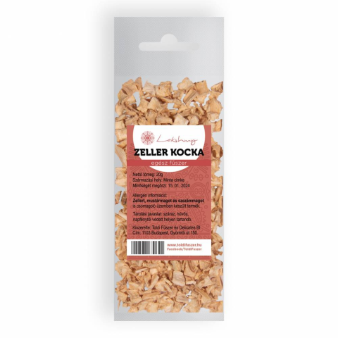 Lakshmy zeller kocka 20 g A zeller gumóját, szárát és levelét egyaránt felhasználjuk. Jelentős mennyiségben tartalmaz C vitamint, meszet és foszfort. A húsleves elképzelhetetlen zellergyökér és -levél hozzáadása nélkül. A szárított változat jól jöhet,