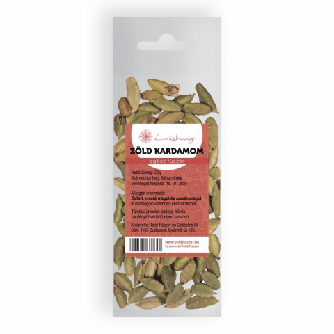 Lakshmy zöld kardamom egész 20 g Egészben (terméshéj, benne a magokkal) és őrölve egyaránt forgalomba, valamint felhasználásra kerül. A termés betakarítása aprólékos és időigényes munka, ennek következtében az egyik legértékesebb fűszer a világon.