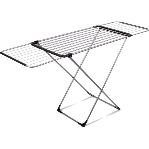 Ruhaszárító - kültéri és beltéri, álló, összecsukható és kihúzható, szabadon álló, 1 emeletes, 24 zsinór/rúd, teljes szárítási hossz 18 m, max. terhelhetőség 15 kg, anyaga fém, mérete kinyitva 94 × 176 × 55 cm (Ma×Sz×Mé), mérete összehajtva 131 × 94 × 55 cm (Ma×Sz×Mé), tömege 2,8 kg Ruhaszárító 18 mLT8102 MEXOBeltéri és kültéri használatSzárítási terület 18 mAcélszerkezetStabilitásErős szárítórudakTeherbírás 15 kgSzárító kihúzható sz