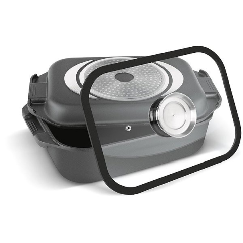 Sütőedény - anyaga: alumínium, mosogatógépben mosható, fedél és hordozó fogantyúk, gáz, kerámia és elektromos tűzhelyhez, 258 mm széles, 415 mm hosszú, 100 mm magas, fekete színű Szeretsz sütögetni és kellene egy szuper sütőedény? A sütőedény alumíniumból készült, tehát nagyszerűen vezeti a hőt, miközben pehelykönnyű marad. Gyakran sütsz különböző húsokat vagy köreteket? A tap