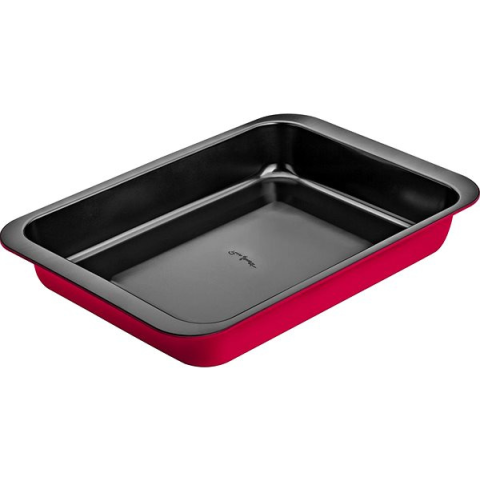 Sütőedény - anyaga: karbonacél, mosogatógépben mosható, gáz és elektromos tűzhelyhez, 290 mm széles, 425 mm hosszú, 50 mm magas, piros színű A sütés a hobbid és szeretnél egy jó sütőedényt? Kiváló minőségű szénacélból készült sütőedény, amely meggátolja, hogy bármi odaégjen. Sűrűn sütsz húsokat vagy különféle köreteket? A tapadásmentes fel