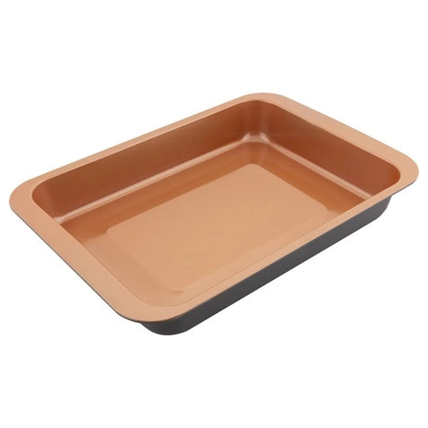 SÜTŐTEPSI MÉRETEK: 42 × 29 × 5 cm ANYAG: szénacél FELÜLET: tapadásmentes SZÍN: réz Praktikus, nagyon könnyű eszköz sütéshez. Egyszerű kezelhetőségével megkönnyíti az ételkészítést. Masszív, ellenálló, kifejezetten ételekkel való érintkezésre