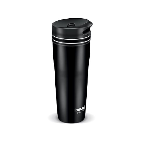 Thermo bögre - 360 ml-es űrtartalom, anyaga: rozsdamentes acél és műanyag, hirtelen kinyitás elleni biztosíték, Termosz, folyadékot melegen vagy hidegen tart, 480 ml-es kapacitás, nagyonerős tok, nyitógomb mechanizmus, könnyű karbantartás.A fekete- fehér Lamart MANQ LT4049 rozsdamentes acél bögrét különösen&nbs