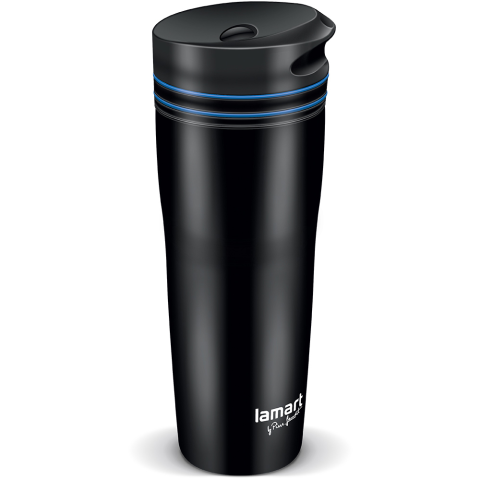 Thermo bögre - 360 ml-es űrtartalom, anyaga: rozsdamentes acél és műanyag, hirtelen kinyitás elleni biztosíték, Szeretnéd, ha a kávéd vagy a teád útközben is meleg maradna? A minőségi Lamart MANQ Thermo bögre 360 ml fekete/kék LT4050 a lehető legjobb választás. A fedele biztosítja, hogy az ital ne lötyögjön ki