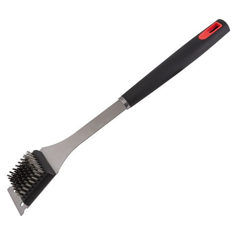 Grilltisztító kefe - grillezéshez, acélsörték, rozsdamentes acél kaparó és acélhuzal kaparó tartozék, lágyított fogantyú, anyag acél/rozsdamentes acél/műanyag, szín ezüst/fekete, hossza 39 cm