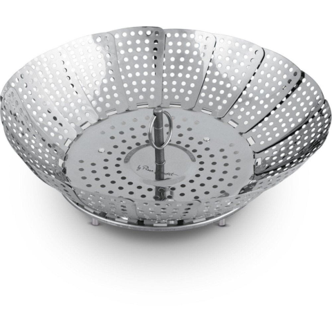 Pároló - fém, állítható méret, összecsukható konstrukció és fogantyú az edényből való kiemeléshez, átmérője 23 cm, magassága 14 cm, ezüst kivitel A LAMART LT7049 pároló praktikus segítség gombócok gőzölésében, de zöldségek és más ételek gőzben történő főzésében is kiváló. Kivitelezésének köszönhetően különböző átmérőjű edényekben haszná
