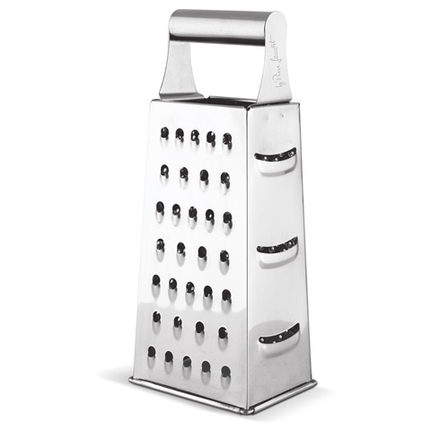 Rozsdamentes négyoldalú reszelő sajtok, zöldségek, gyümölcsök stb. kézi reszeléséhez. A négyféle reszelőfelület megfelelő lehetőséget kínál az élelmiszerek vastagságának megválasztására. Stabil rozsdamentes acél fogantyú. Az első és minden további használat előtt mossa el mosogatószeres meleg vízzel, öblítse le és szárítsa meg. A terméket tartsa gyermekektől távol.
