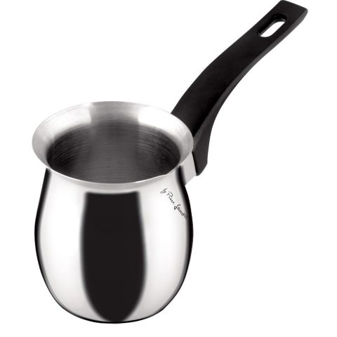 Dzsezva hagyományos török vagy görög kávé készítéséhez kiváló minőségű rozsdamentes acélból. Stílusos kivitel, ergonomikus bakelit fogantyú. Tölcsér. FIGYELEM: a termék 3 részből áll - edény, fogantyú és csavar. Kicsomagolás után a fogantyút hozzá kell cs