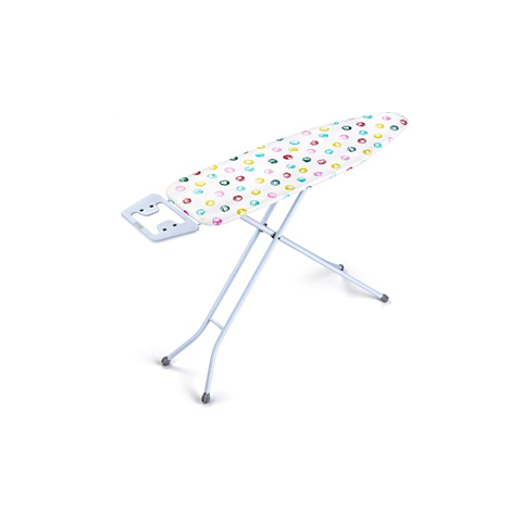 MÉRETEK 110 x 33 cmANYAG: acél / pamutSZÍN: fehér lábazat, színes kárpitozásMinőségi vasalóállvány szállítási zárral, a gőzt elvezető vasalófelülettel.Az állvány szerkezete stabil és biztonságos, a termék lábain csúszásgátlók vannak felszerelve.Az állvány része egy pamuthuzat is.Az állvány magassága állítható.