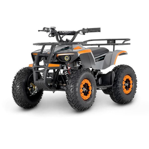 Négykerekű gyerekeknek - fiúknak és lányoknak, ajánlott 5 éves kortól, maximális sebesség 25 km/h, motor összteljesítménye 1000 W, működési ideje egy feltöltéssel 90 perc, terhelhetősége 65 kg, gumi kerekek, 1 ülőhely, rugózott, akkumulátor töltöttség jelző, LED világítás, tárolóhellyel, problémamentes elindulás, hangeffektek, töltő adapter és szerszámkészlet a csomag része, tömege 57 kg, méretek 69 × 65 × 115 cm (Ma×Sz×Mé) LAMAX eTiger ATV50S - A