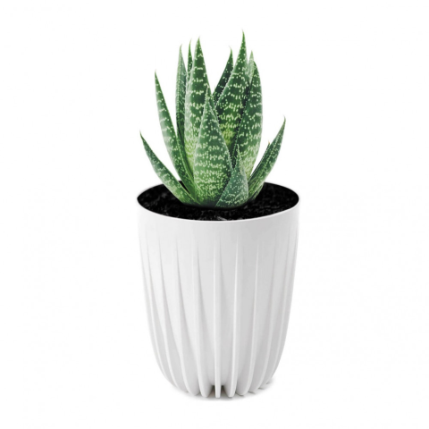 1 kép Lamela ECO Recycling dekoratív virágcserép Ø25 cm fehér virágtakaró alján vízelvezető betéttel