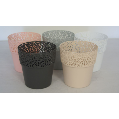 Virágcserép/kaspó csipkemintás 13cm Méretei:130x135mm Anyaga:műanyag