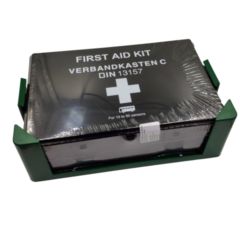 Din 13157 szabvány alapján összeállított mentődoboz, mely üzemekben, illetve buszokban kötelező felszerelési cikk.