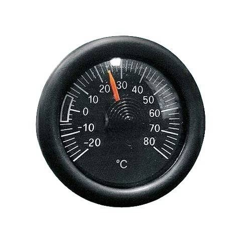 Kicsi, kerek, könnyen felszerelhető, mutatós analóg hőmérő.