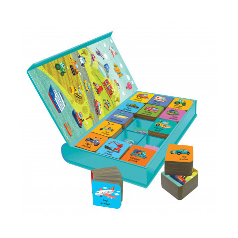 Minden gyerek kíváncsi a járművekre! Ebből a különleges kiadványból 75 jármű nevét tanulhatják meg, így miközben a kedves rajzokat nézegetik, bővíthetik a szókincsüket. 15 kemény lapos kis könyvet rejt ez a praktikus, mágneszáras doboz, amit a kicsik bárh