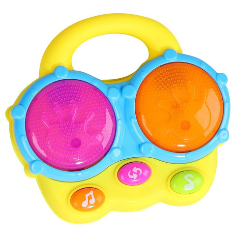 Dobok, amelyek zenét, dobhangokat, állathangokat és fényeffektusokat is produkálnak, a játék egyszerű és tetszetős formájú a gyerekek kezére. Az aranyos dobokon két nagy és három kicsi gomb található, amelyek villoghatnak és különböző dallamokat játsz