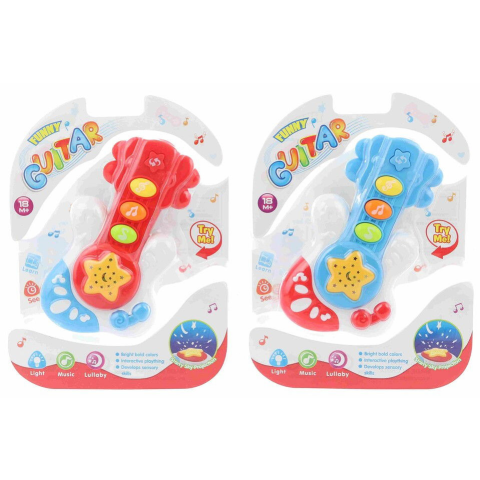 Gitár elemekkel 15 cm 2 színben Műanyag gitár a legkisebbeknek. A gombok megnyomásakor világít és hangot ad ki. 2x AAA elemmel működik (a csomag tartalmazza) A gitár méretei kb 14 x 7,5 x 4 cm Az ár 1db-ra vonatkozik.