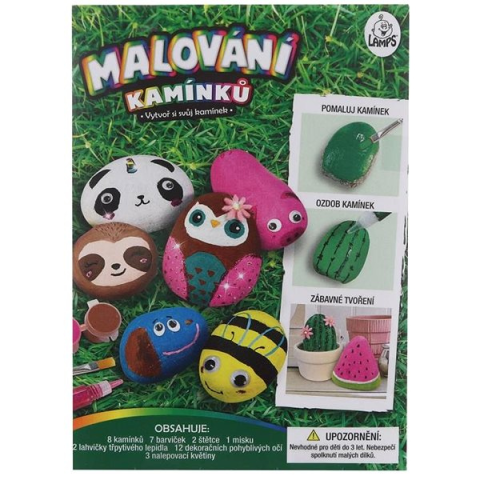 Kavics festés - a csomag része ecset, 8 kavics, 7 szín, ajánlott 3 éves kortól